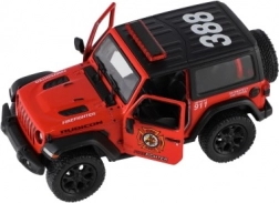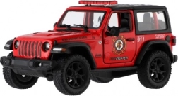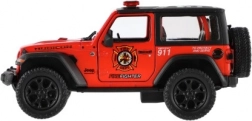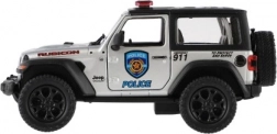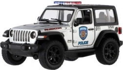 Metalmodel af Jeep Wrangler Politi 2018 i skala 1:32 med åbne døre og pullback-funktion. Et fremragende valg til børn fra 3 år.