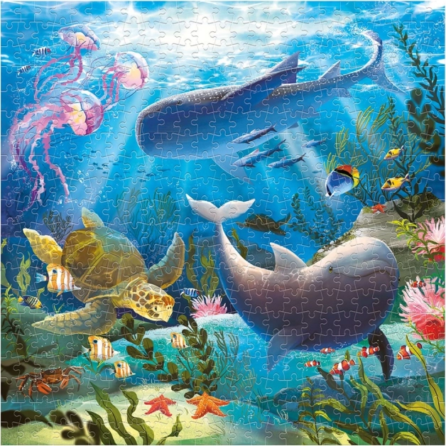 Tag på eventyr i havets dyb med dette 500-brikkers puslespil. I de mystiske vande, mellem tang og koraller, venter der fortryllende udsigter til havets skabninger.