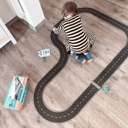 Sættet indeholder alt til at skabe en rundbane på 400 cm med en legeflade på 150 × 100 cm. Det er kompatibelt med alle tilbehør i MyRoads-serien, så banen kan udvides når som helst. Biler medfølger ikke. Som naturprodukt kan materialet have små farvevariationer.