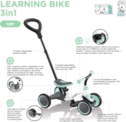 Opdag en smart løsning til dit barns første køreture. Denne stabile 3-i-1-model kombinerer forældrestyret tilstand, selvstændig trehjulet cykel og balanceløbecykel. Takket være de brede hjul, ergonomiske greb og det komfortable sæde føler børn sig trygge og tilpas både inde og ude.