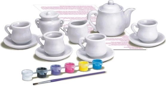 Opdag et kreativt mini-tesæt, som børn selv kan dekorere og male efter deres egen fantasi. I pakken er alt, hvad der behøves for at personliggøre et tesæt i 13 dele – ideelt til leg med dukker, børne-teparties eller som en unik dekoration til børneværelset.