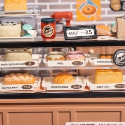 Integreret LED-belysning fremhæver montren med bagværk og giver modellen en realistisk, varm atmosfære. Det kræver blot 2× AAA-batterier.