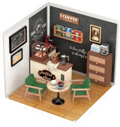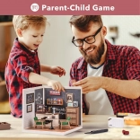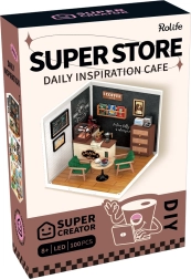 Træd ind i en verden af mini-caféer, hvor hver detalje glæder øjet – fra stole og bord til kaffemaskine og vægdekorationer. Sættet leveres usamlet og danner efter samling en imponerende scene, som pynter på hylden, bordet eller i montren. LED-belysningen giver modellen en unik atmosfære.