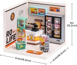 Oplev miniaturemagi med huset “Forsyningsbutikken” fra ROBOTIME. Sættet leveres usamlet og skaber efter samling en hyggelig scene af en lille butik, der har åbent “24/7”. Takket være LED-belysningen fremhæves alle fine detaljer, og modellen bliver en unik dekoration på hylden eller skrivebordet.