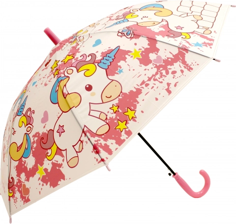 Den søde børneparaply med enhjørningemotiv beskytter dine børn mod regnen og begejstrer dem med sit farverige design. Takket være den kompakte længde på 50 cm er den nem at have med i skole og på ture og fås i flere farvevarianter.