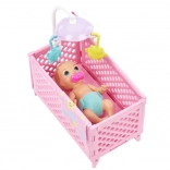Sættet inkluderer en lyserød krybbe med uro, et blødt tæppe, en lille bog og en sød bamse – alt til rolig putning og masser af scenarier.