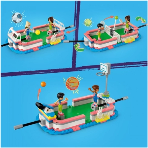LEGO Friends sportscenter giver børn uendelige lege muligheder. Den modulære bane kan nemt ændres fra fodbold til tennis eller basketball, og der er resultattavle, sikker opbevaring til bolde samt et detaljeret bagområde – fitness, klatrevæg og omklædning. Med LEGO Builder appen er byggeriet intuitivt takket være zoom, rotation af modellen og sporing af fremskridt.