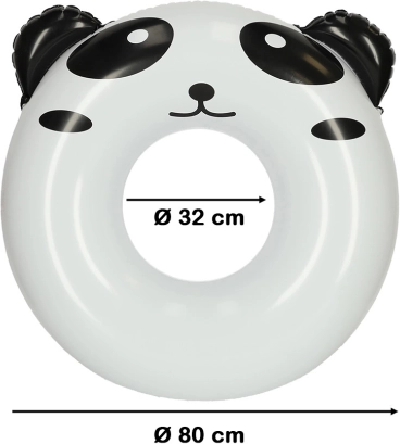 Oppustelig børnesvømmering med panda, diameter 80 cm, belastning 60 kg. Holdbar plast, kompakt til rejser, ideel til børn fra 6 år. Sikker og sjov leg i vandet.