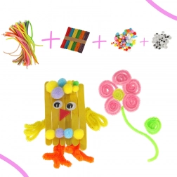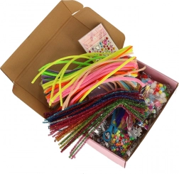 Dette alsidige sæt giver børn et bredt udvalg af materialer til hundredevis af originale idéer – fra dyr af piberensere og pyntede kort til egne smykker af perler. Takket være den store mængde og variation af komponenter træner børn koordinationsevner, præcision og tålmodighed.