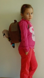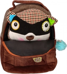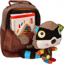 Rygsækken har et legende legetøj i form af en vaskebjørn, der gør det sjovt at bære rygsækken.