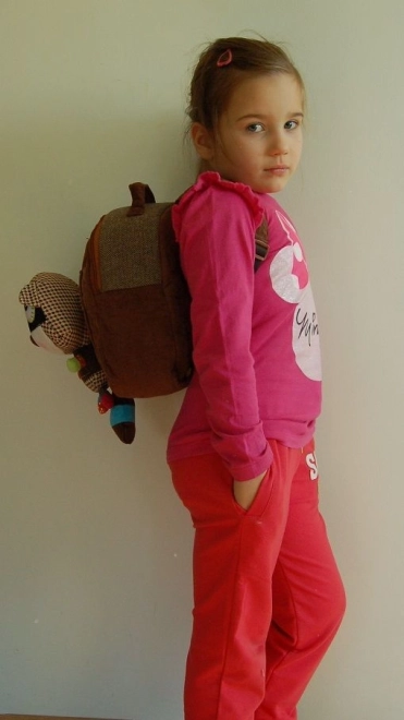 Børne rygsæk EcoSnoopers med vaskebjørn kombinerer funktionalitet og sjov med sit legende design. Lommen er sikret med velcro og har et sødt vaskebjørnlegetøj fastgjort. Denne del er delvist håndlavet, hvilket tilføjer dens charme.