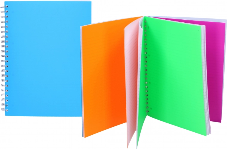 Universel linjeret hæfte/notatblok med spiralindbinding er et godt valg til daglige notater. A4-formatet og det mere robuste, aftørrelige omslag sikrer komfort og holdbarhed på farten, i skolen og på kontoret. Takket være spiralindbindingen bladres siderne let, og perforeringen muliggør ren afrivning uden papirrester.