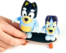 Sættet Bluey-figurer på skateboard er den ideelle gave til alle små fans af universet Bluey. Det indeholder to passive bevægelige figurer, Bluey og hendes far Bandit, som børn kan placere på skateboardet og iscenesætte forskellige scener.