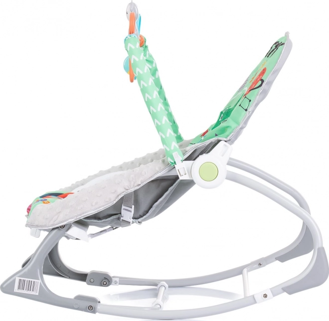 Vibrationsliggestol til babyer Baby Spa Green tilbyder dobbelt funktion som vugge og stol. Den er ideel til børn fra fødslen, med melodier og blide vibrationer for at berolige samt sjove ophængte legetøj.