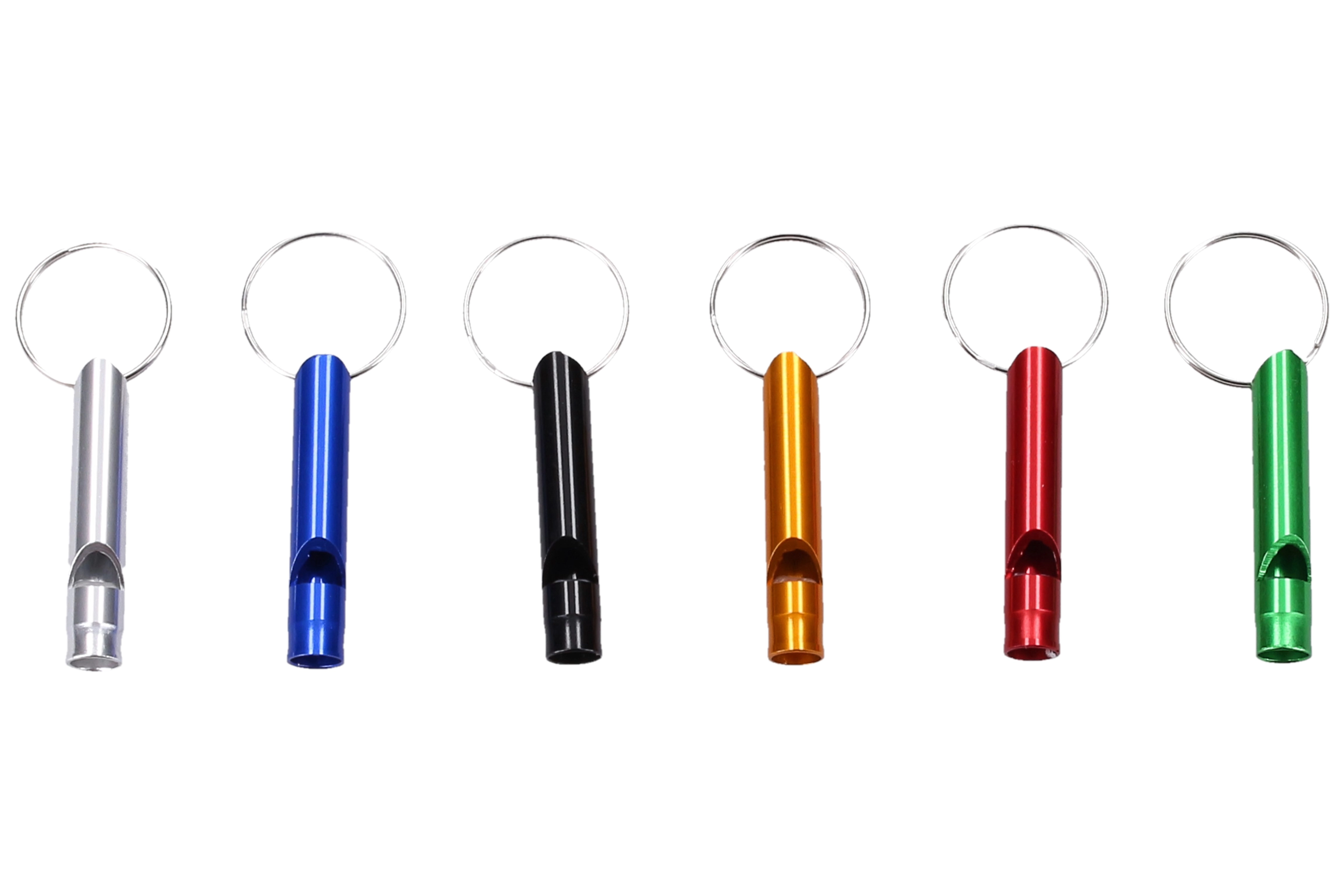 Praktisk nøglering med en farverig fløjte på 4,5 cm – det ideelle tilbehør til nøgler, rygsæk eller taske. Giver en hurtig signallyd for øget sikkerhed, orientering og sjov.