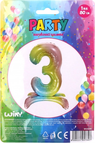 Denne regnbueballon formet som tallet 3 er et perfekt valg til fødselsdage og andre særlige lejligheder. Dens strålende regnbuefarver og størrelse på 80 cm gør den til et iøjnefaldende element i udsmykningen, som ser fantastisk ud på billeder.