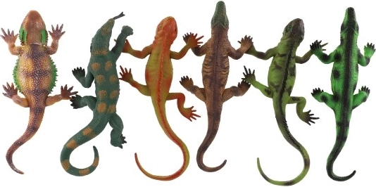 Dette sæt indeholder 12 farverige øgler, som er udstyret med en sugekop på undersiden, så de kan sættes fast på glas, fliser eller andre glatte overflader. Hver øgle er 22 cm lang, hvilket gør dem lette for børn at håndtere. Leg med dette sæt stimulerer kreativitet, finmotorik og giver både sjov og læring om naturen.