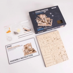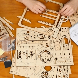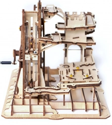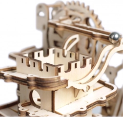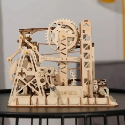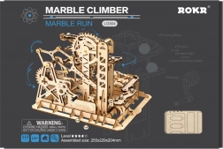 ROKR Climber er en håndsamlet kuglebane lavet af præcist laserudskårne trædele. Den elegante konstruktion med central “fæstning” udnytter gear, aksler og løftemekanismer, som fører kuglerne jævnt gennem gennemtænkte spor. Byggesættet udvikler teknisk tænkning, fantasi og finmotorik – og er samtidig en attraktiv designdekoration.