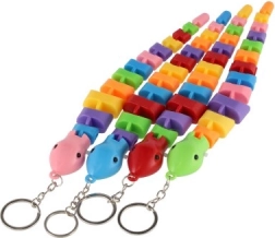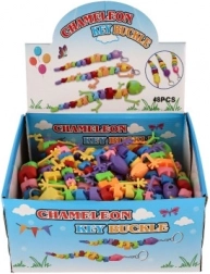Du kan nemt sætte den på nøgler eller rygsæk takket være metalringen. Fås i et farverigt mix af farver og former (firben/kameleon/slange).