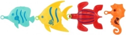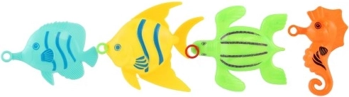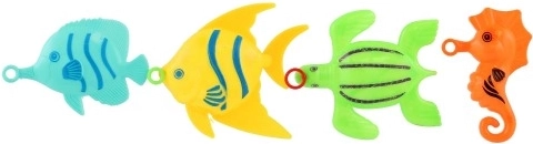 Sættet indeholder 4 tydeligt farvede fisk, der stimulerer barnets fantasi og motiverer til leg og konkurrence – hvem fanger dem hurtigst?