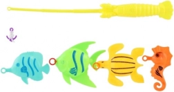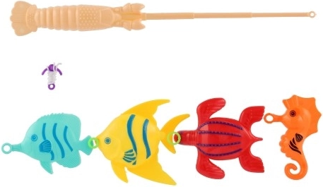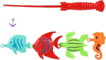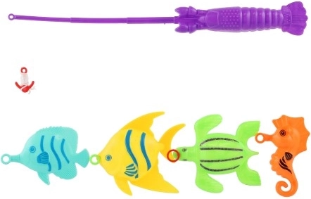 I pakken finder du 4 farverige fisk og en børnefiskestang med krog. Takket være den lette konstruktion er den nem at håndtere selv for mindre børn. Sættet egner sig til leg på børneværelset og i vand. De enkelte dele kan variere i farve.