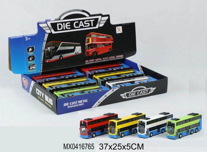 Bus med lyseffekter og lydeffekter tilbyder underholdning for alle modelentusiaster. Pull back-funktionen gør det let at trække tilbage og køre afsted.