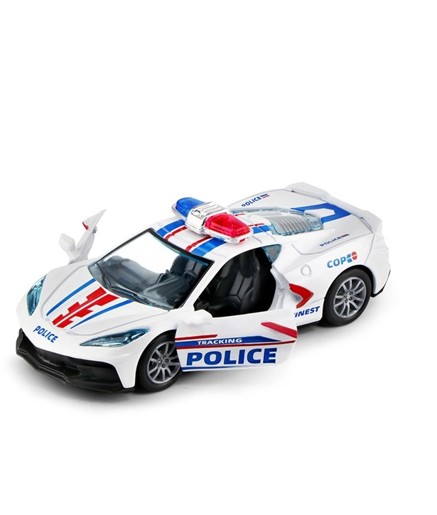 Oplev en detaljeret metalmodel af en politibil i 1:32, der imponerer med troværdigt design og robust konstruktion. Perfekt til børns politiroller og -lege samt for samlerentusiaster, der sætter pris på præcise detaljer.