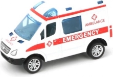 Metalmodel af politibil og ambulance med pull-back motor