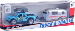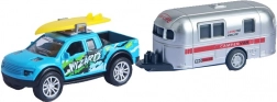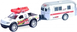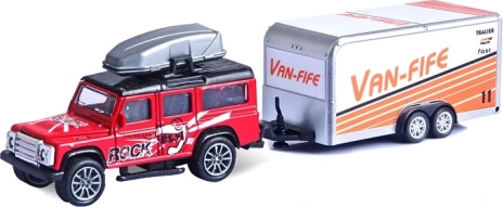 Der findes 4 attraktive designs – fra en sporty pick-up til en SUV med tagboks. Hver model har frit roterende hjul, realistiske prints og et funktionelt træk til at koble anhængeren på.
