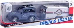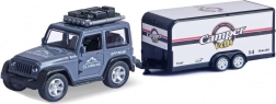 Terrængående jeep med campingtrailer – pull-back metalmodel