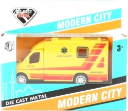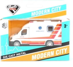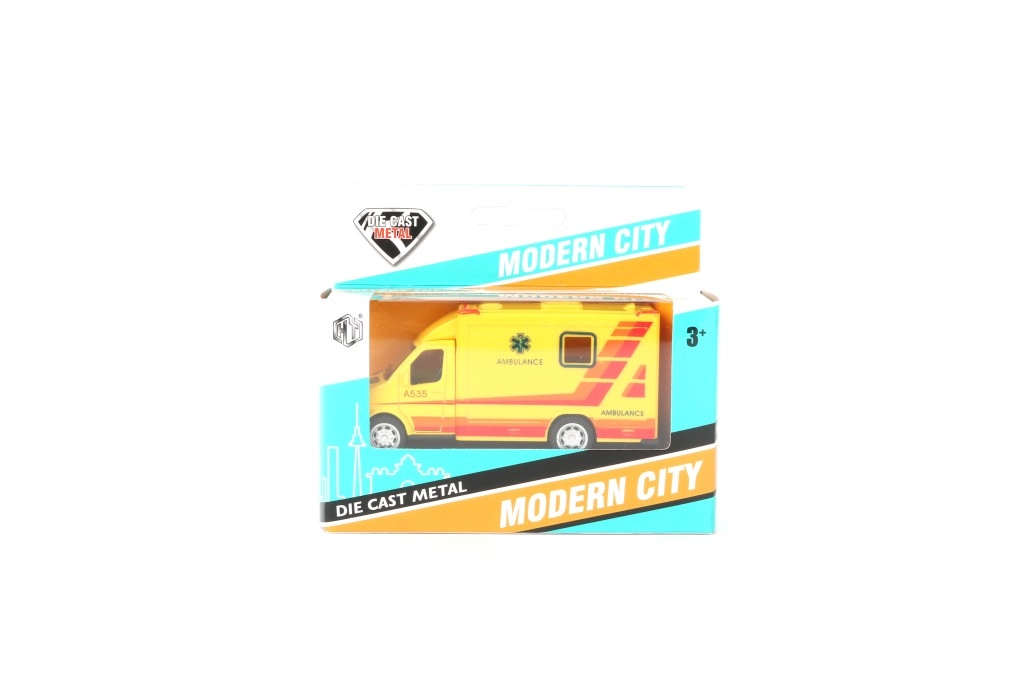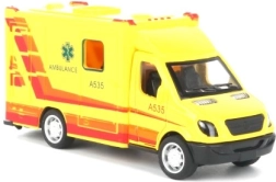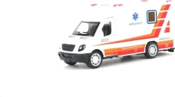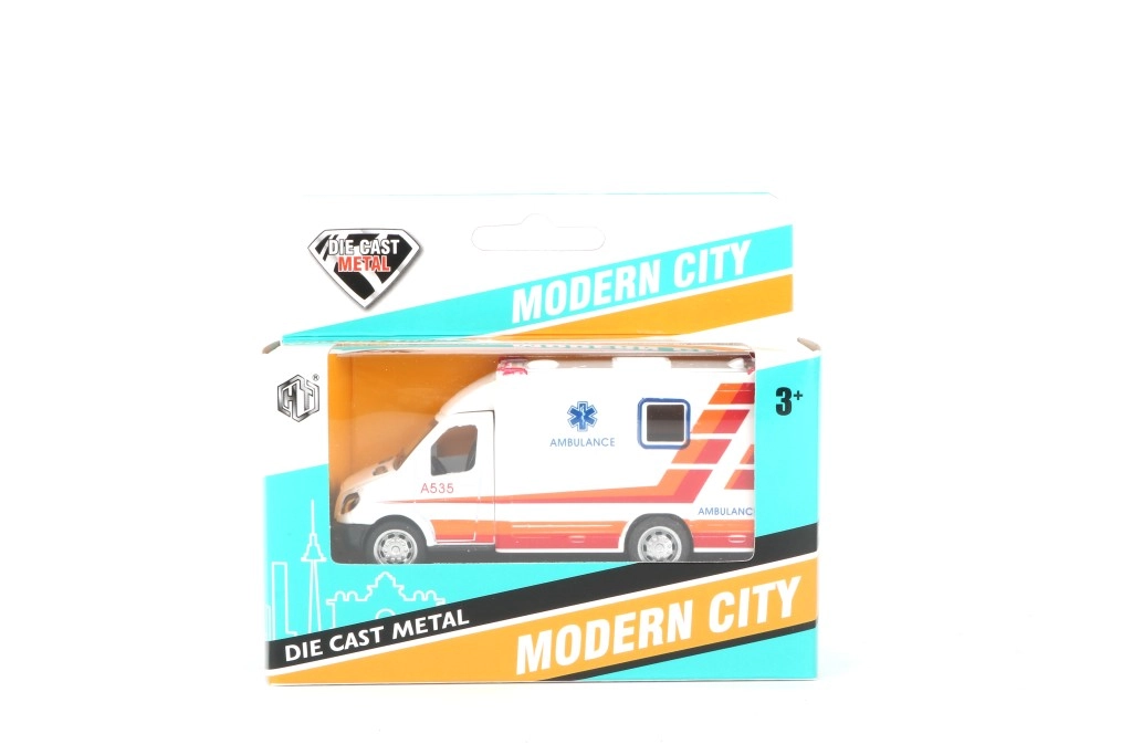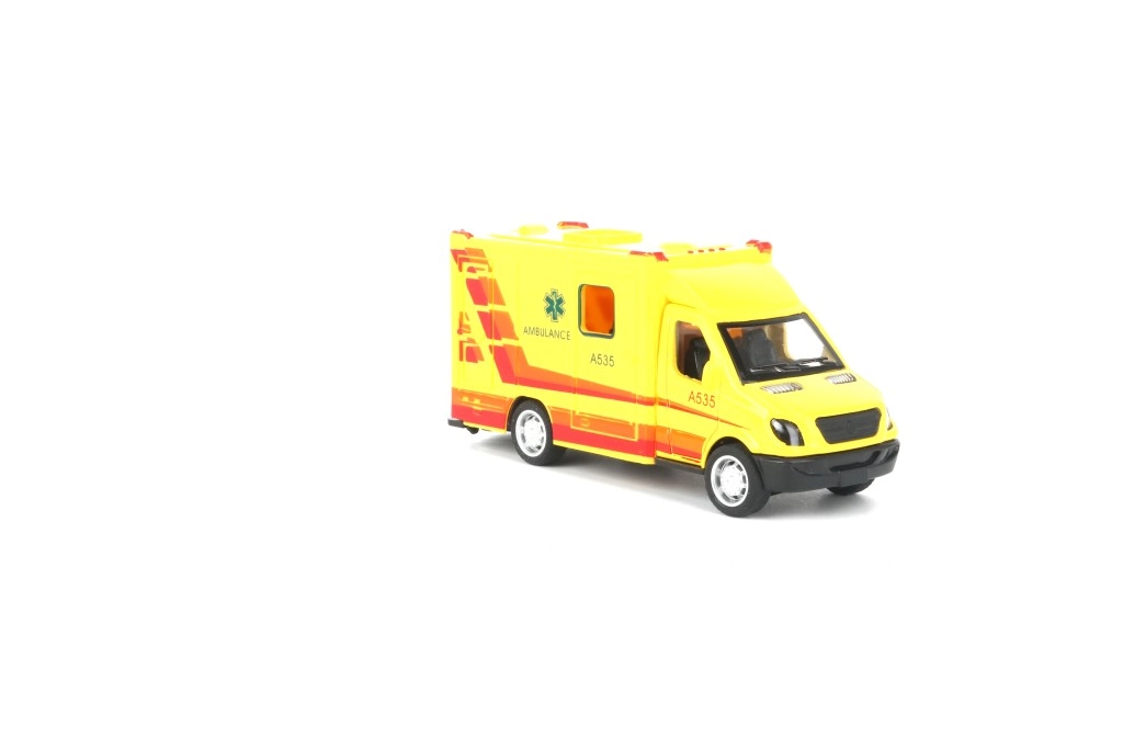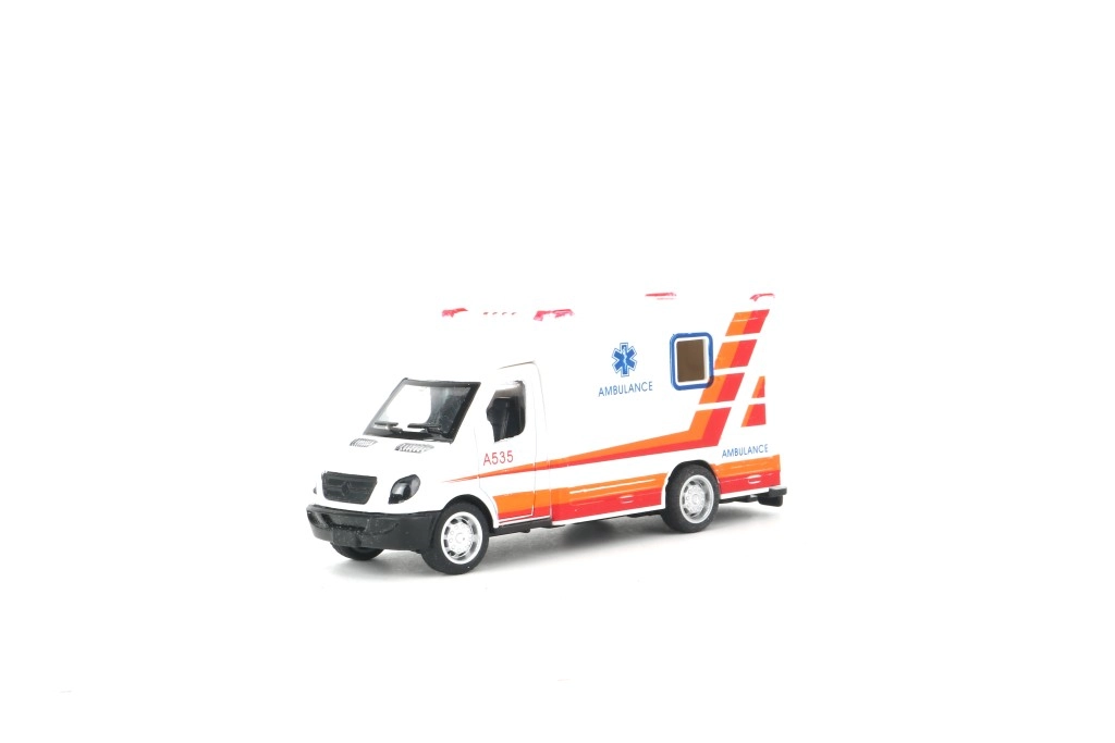 Ambulance med døre, der kan åbnes, og pullback-funktion – træk op og kør.
