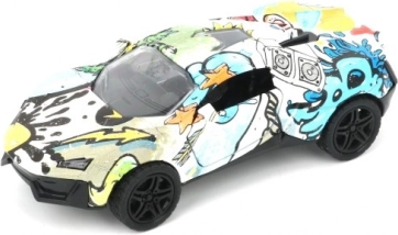 Bilen Crazy leverer sjov for fuld skrue – træk den tilbage, og se den skyde frem. Realistiske åbningsbare døre og et detaljeret karrosseri i forskellige graffiti-designs glæder både børn og modelentusiaster. Perfekt til børneværelset, skrivebordet og på farten.