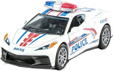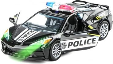 Nyd actionfyldte forfølgelser og udrykninger med en detaljeret model af en politibil i metal. Den robuste metalkonstruktion sikrer lang holdbarhed, mens åbne døre og lyseffekt giver en mere autentisk legeoplevelse.