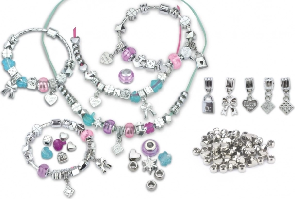 Sæt med armbånd og halskæder indeholder fem forskellige dele i varierende stilarter, så du kan skabe dine egne unikke smykker.