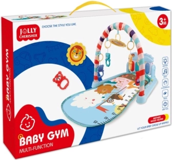 pædagogisk lege- og aktivitetsmåtte 3-i-1 med gåvogn, klaver og ophængte legetøj