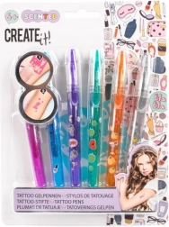 Vær kreativ med dette fantastiske tattoosæt fra CREATE it!. Sættet indeholder seks farvede duftende penne i nuancerne pink, blå, lilla, grøn, orange og sølv, hvilket giver dig mulighed for at skabe uendeligt mange designs. Hver pen er designet med et dekorativt look og en duftende essens for en endnu sjovere oplevelse.