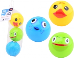 Happy Worlds bløde bolde giver sikker og sjov leg for de allermindste. Formet som små dyrehoveder – frø, fisk og andeunge – indbyder de til at blive udforsket, klemt og rullet og understøtter naturligt fantasifuld leg.
