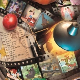 Puslespillet hylder Disney-figurer gennem filmiske motiver og objekter som ure og æbler.