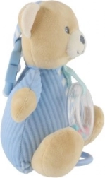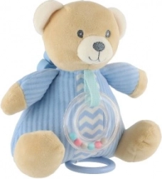 Denne ultrabløde bamse i blå beroliger og underholder – efter optræk spiller den en behagelig melodi i ca. 1 minut og 20 sekunder, mens den gennemsigtige rangle med farvede kugler støtter høresansen og bevægelseskoordinationen. Den kompakte størrelse 18 × 18 cm passer perfekt til selv de mindste hænder.