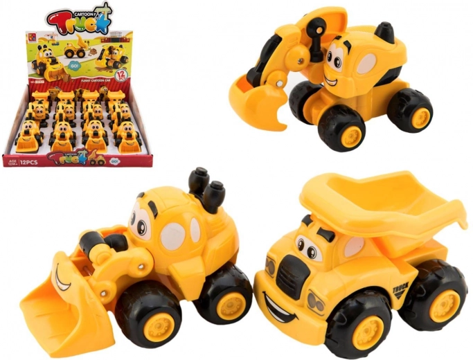 Der findes 3 forskellige typer entreprenørkøretøjer, som stimulerer børns fantasi og finmotorik. Takket være den kompakte størrelse på ca. 9 cm passer bilerne let i en rygsæk og er ideelle til leg både hjemme og på farten.