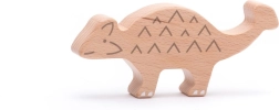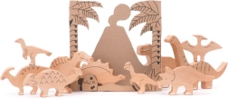 Emballagen er udformet, så den kan fungere som kulisse til kreativ leg. Ved at skære langs de markerede linjer i kartonen skaber du en forhistorisk scene. Legetøjet er lavet af bøgetræ, som er kendt for sin levetid og miljømæssige bæredygtighed. Leg og læring går hånd i hånd gennem naturlige materialer.