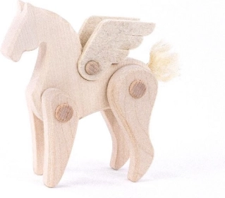 Bajo Pegasus er et legetøj, der udstråler fart og ubegrænset frihed, inspireret af et af de mest kendte mytiske symboler. Med sin krop og ledben lavet af platantræ og filtvinger skaber den en rig og beundringsværdig effekt.