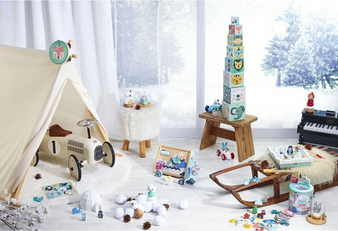 Tidlose pastelfarver og det originale design af Michelle Carlslund gør labyrinten til en fin interiørdetalje. Takket være de kompakte mål passer den på en hylde, et lille bord eller i en legekrog og egner sig perfekt som gave til den første fødselsdag.