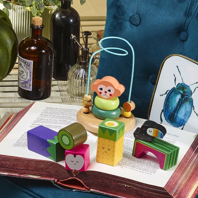 Opdag den sjove og miljøvenlige verden af illustrationer fra den internationalt anerkendte Michelle Carlslund, som har overført sine blide og poetiske motiver til dette unikke legetøj. Abenes labyrint kombinerer stabelbare elementer og farvede metalbøjler, der motiverer børn til bevægelse og læring. Det interaktive design vækker børns fantasi og understøtter samtidig deres sensorimotoriske udvikling.