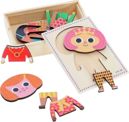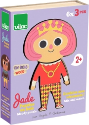Påklædningspuslespil Jade med 6 forskellige outfits giver børn mulighed for at skabe utallige kombinationer og udvikle deres kreativitet og motorik. Indeholder 18 brikker i en praktisk æske.