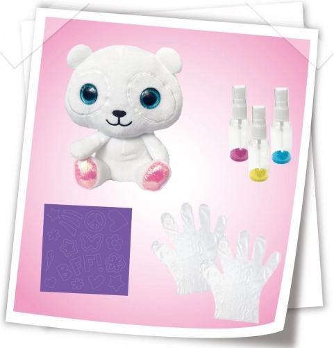 Opdag et sjovt kreativt sæt, hvor børn selv kan pynte deres egen plyspanda. Sættet indeholder sprays, klistermærker og handsker – alt til nem og sikker kreativitet og en unik legetøjsfigur efter fantasien.