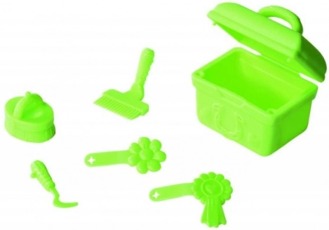Hesten har lang man og hale, som kan børstes og pyntes med de medfølgende spænder. Bag sædet i kareten gemmer der sig en hemmelig boks til småting og tilbehør – der medfølger også en grøn æske til behov omkring hesten. Leg med Evi styrker fantasien, følelsesmæssig udvikling og ansvarlighed.