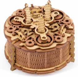 Kassen er lavet af kvalitets birketræ med detaljerede laserlavede udskæringer. Den robuste konstruktion sikrer lang levetid og gentagen brug.