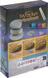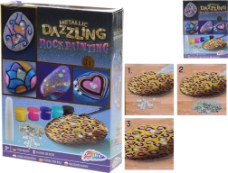 Lav unikke dekorationer og gaver med skinnende metalliske effekter. Sættet er velegnet til både begyndere og øvede – åbn farverne, slip fantasien løs, og udsmyk de naturlige sten med originale mønstre. Takket være glitter og selvklæbende sten opnår du et effektfuldt resultat på ingen tid.