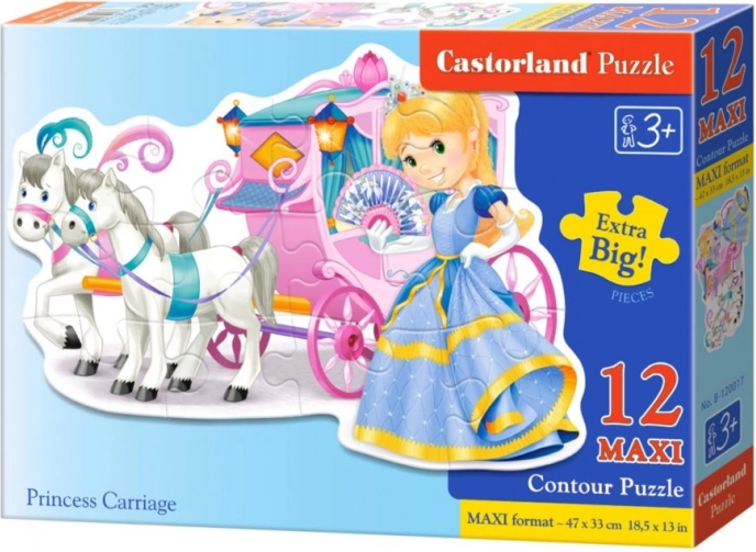 Oplev det første puslespil med temaet prinsessens karet. Maxi puslespil med 12 store brikker er ideelt til små børnehænder – de er nemme at holde, dreje og få til at passe sammen. Takket være de livlige farver og den omhyggelige udførelse vender børn gerne tilbage til puslespillet.